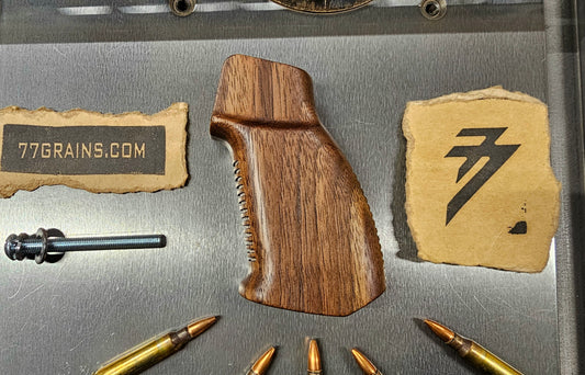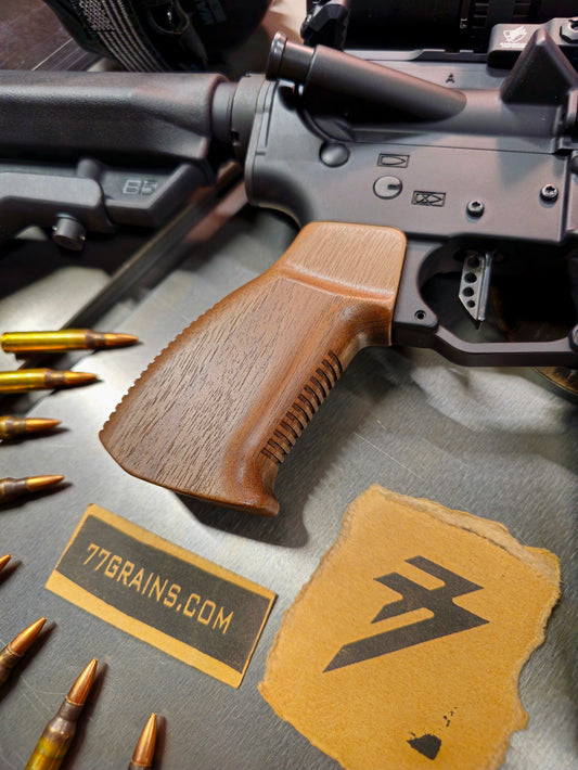 Solid Black Walnut. Made by hand in Colorado. Fits any platform that will accept AR15/M4 pistol grips.
