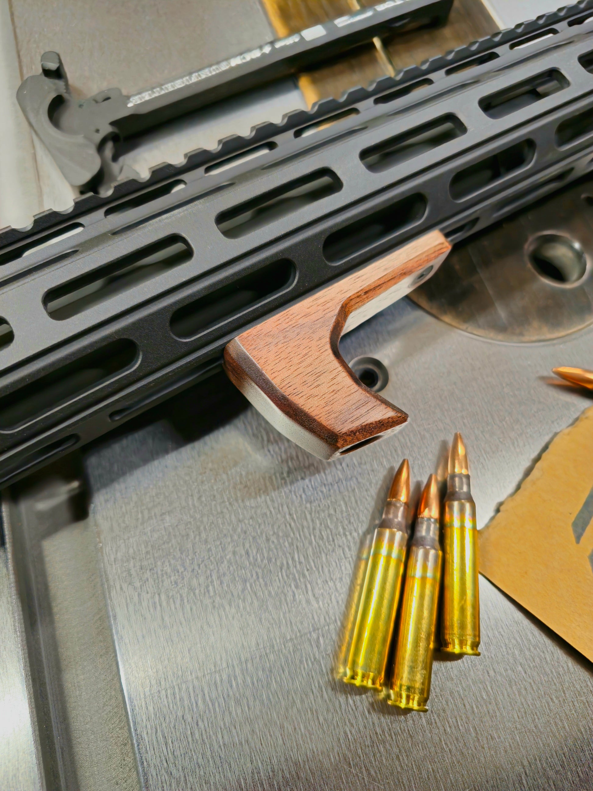 M-lok bumpers machined into the top.