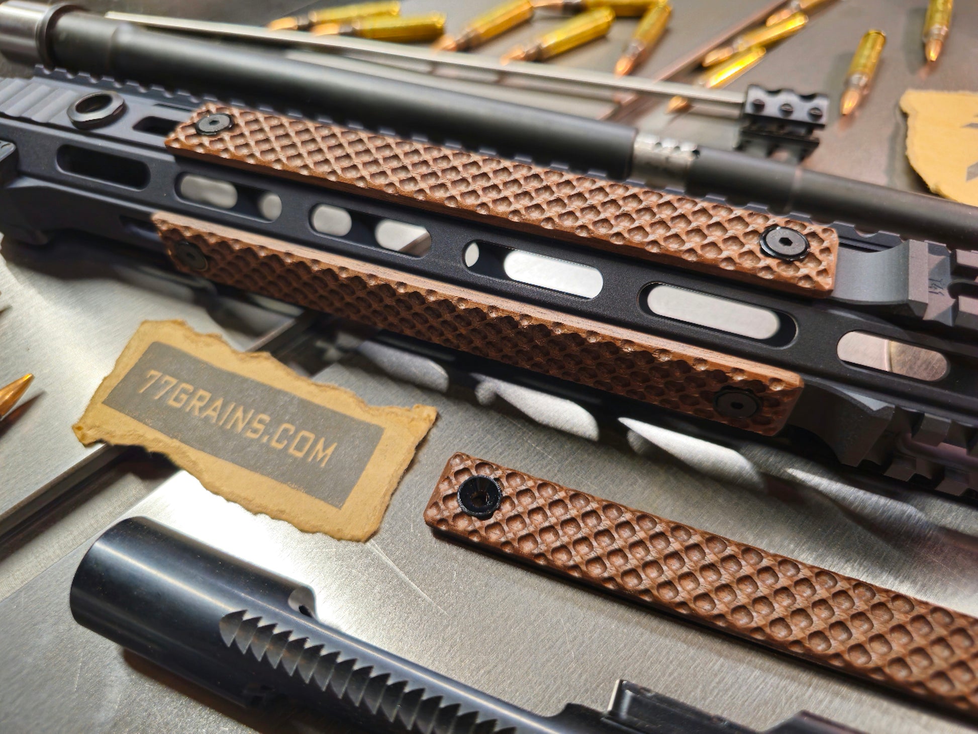 The most solid mounting hardwood rail covers available. M-lok bumpers milled on the back side of each panel to help with alignment and prevent the panel from sliding instead of just relying on the m-lok hardware by itself